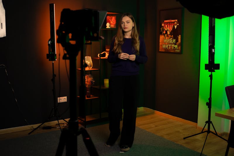 Красиві локації, які можна змінювати залежно від ваших потреб, професійні камери, мікрофони, світло та штативи.